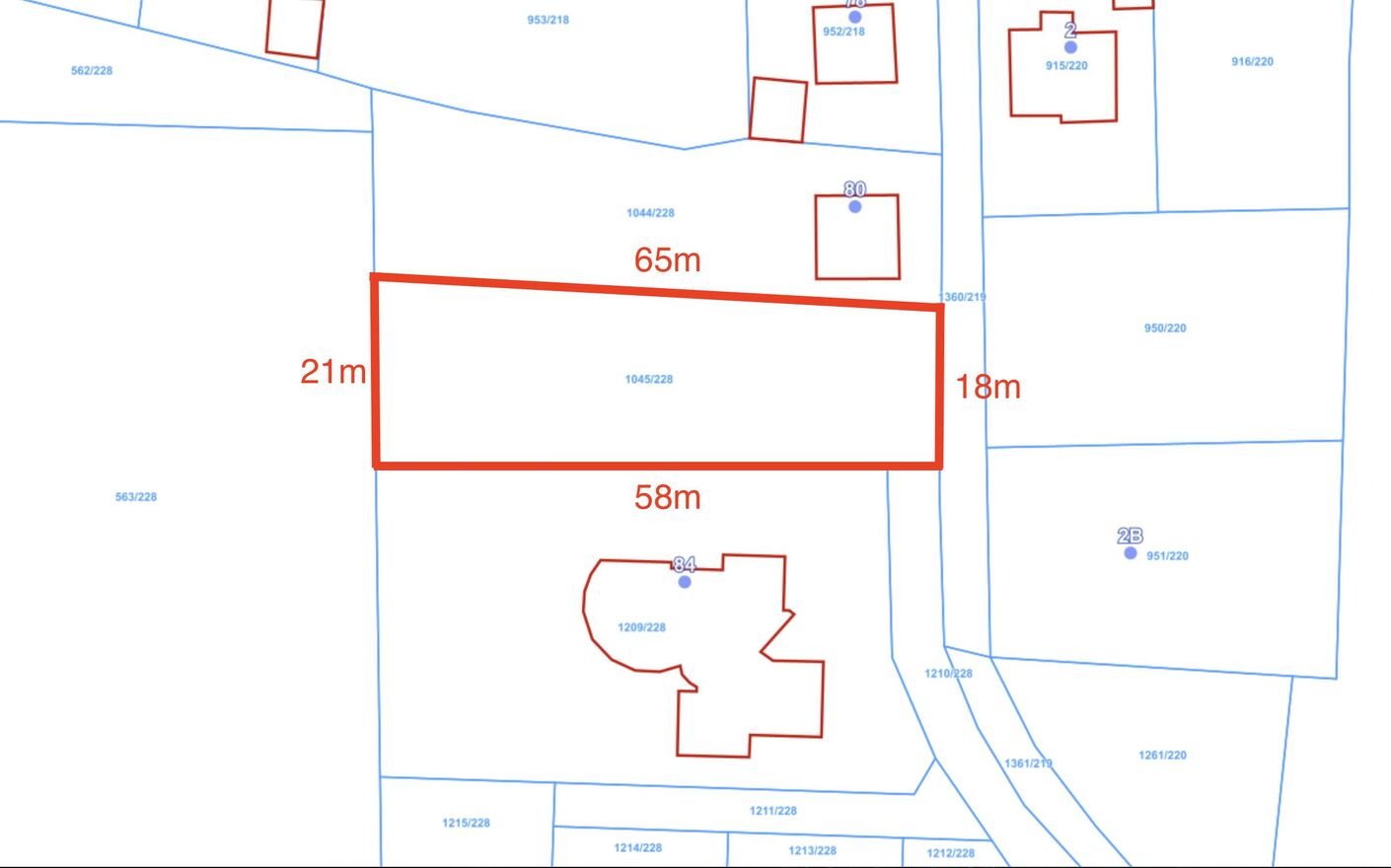 Długość działki: 65